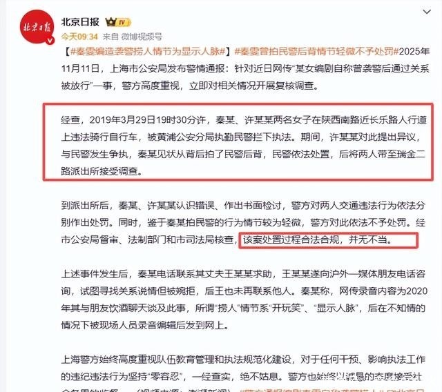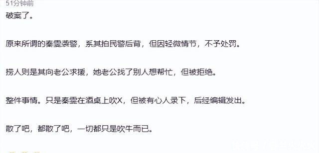 经过调查后官方表示此事只是秦女士为了展示人脉,当时秦女士等人的确是和官方发生了争执,